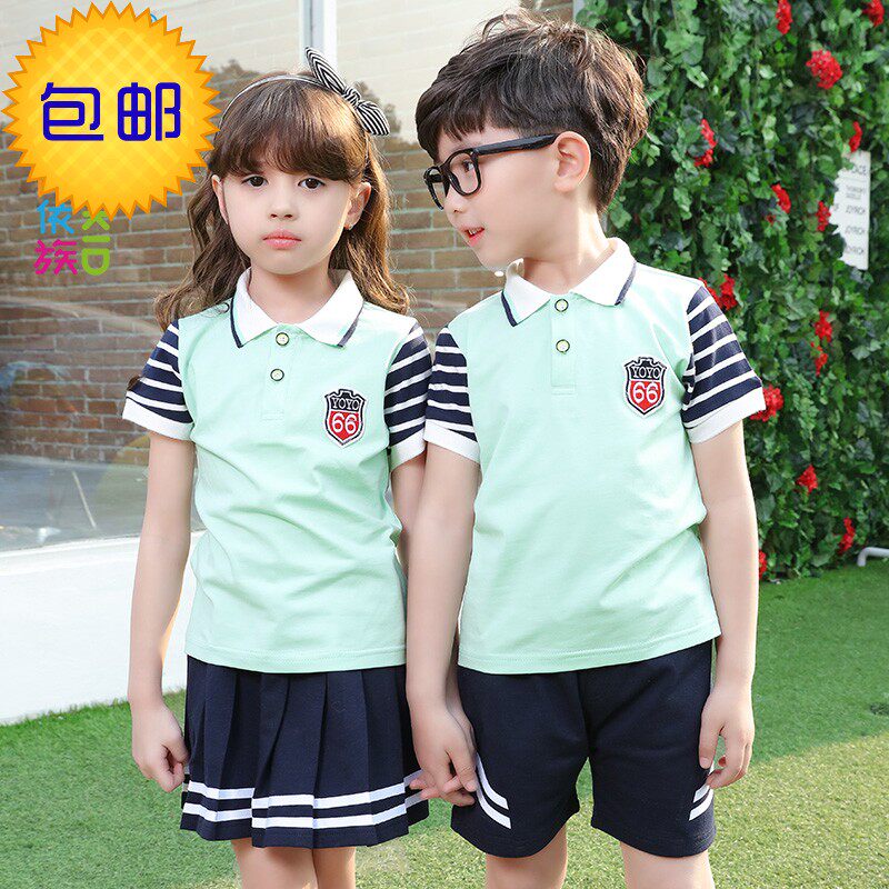 Kindergarten Garden Clothes Elementary School Students School Uniforms Spring Summer Collision Color Splicing Short Sleeve Suit Group Purchase and Do Inprint