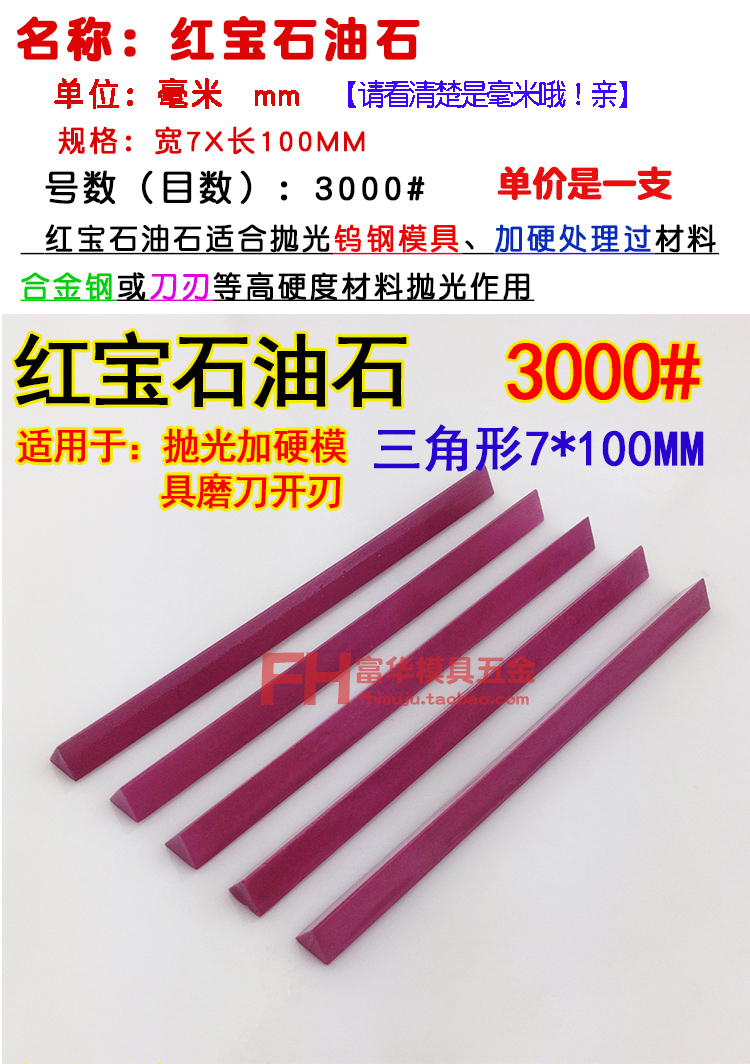 Triangular ruby oil stone strip hardened fine grinding and polishing sharpener sharpening stone 3000# 7*100 mm