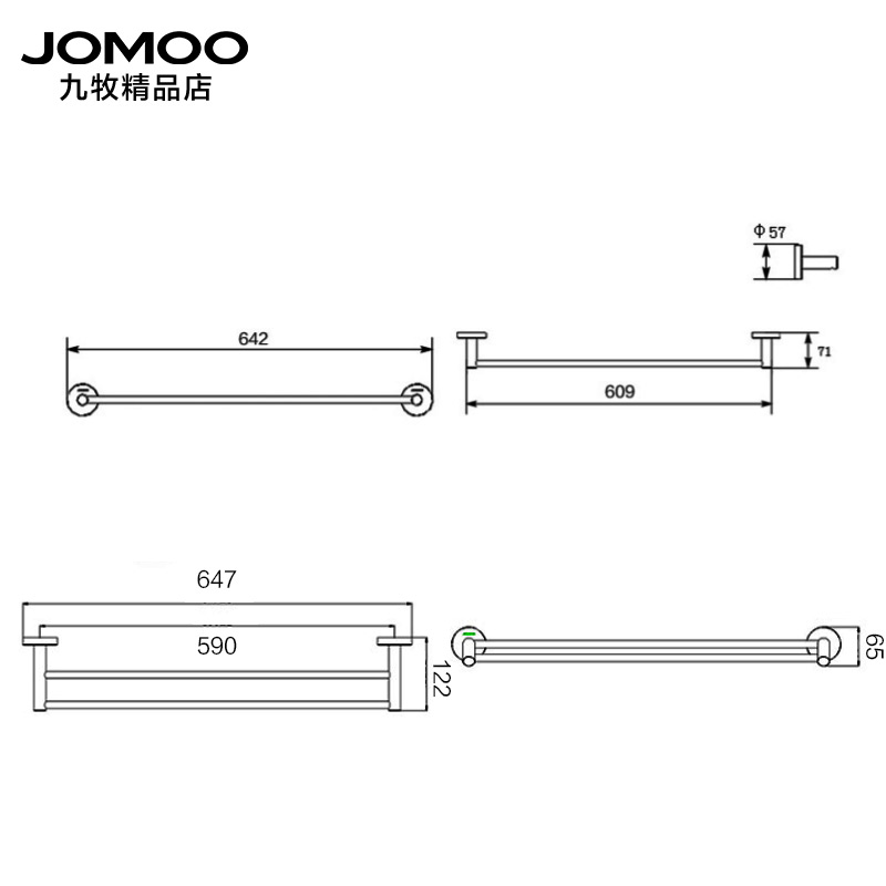 Nine Shepherd Towel Rack Bathroom Space Aluminum Bath Towel Rack Makeup Room Towel Rack Single Pole Double Rod Towel Rod Wall-mounted Rack