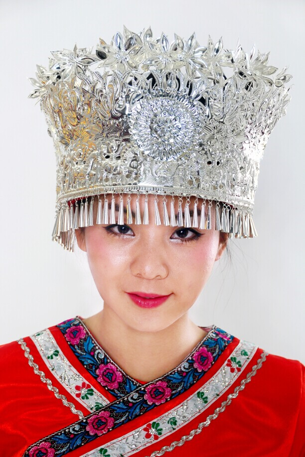 Wholesale Miao silver decorated head decoration Miao silver hat Miao item ring Miao ethnic clothing headwear stage performance hat