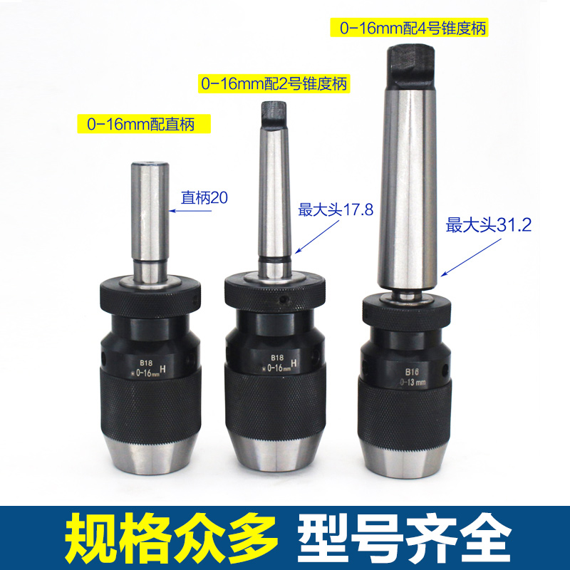 Self-tightening drill chuck with taper shank milling machine R8 lathe tailstock MT straight shank Chuck 0-16 self-locking self-locking