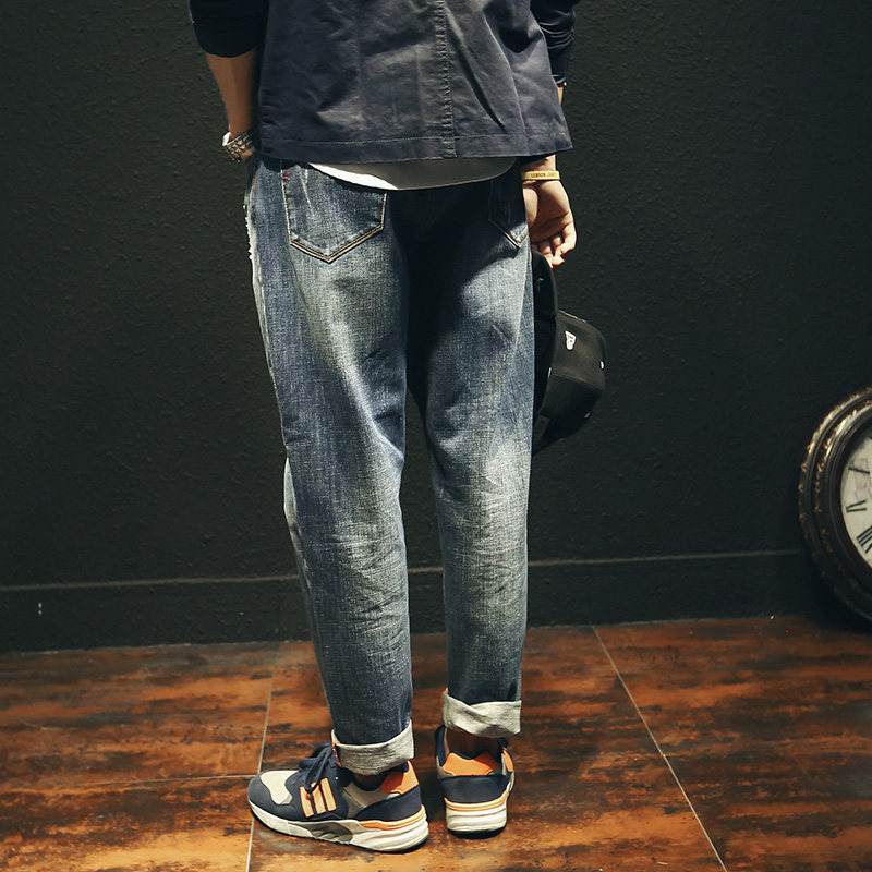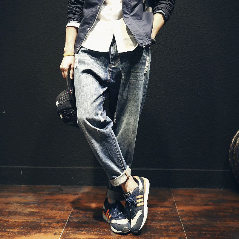 Summer thin section Broken Cave Jeans Male Loose Tide Card Ins retro pants Big size Size Fat Subs Little Foot Long Pants Tide