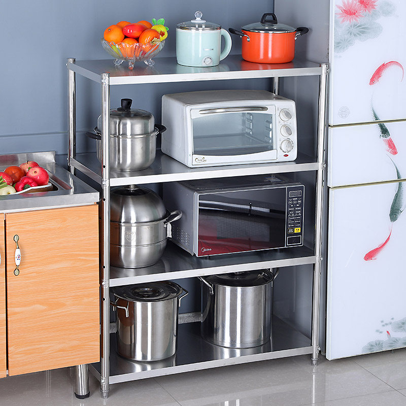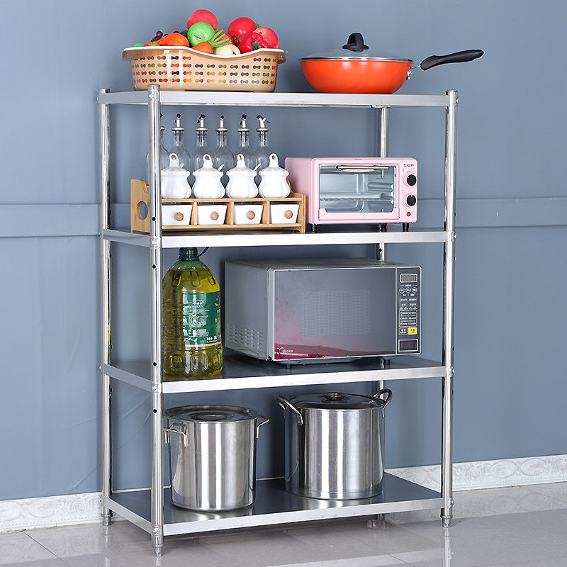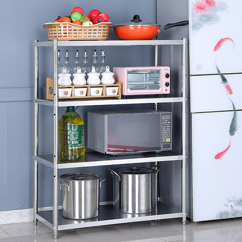 Kitchen Racks 4 Floors Stainless Steel Microwave Oven Shelf Floor Multilayer Vegetable Pan Rack Bowls Rack Contained Shelf 3
