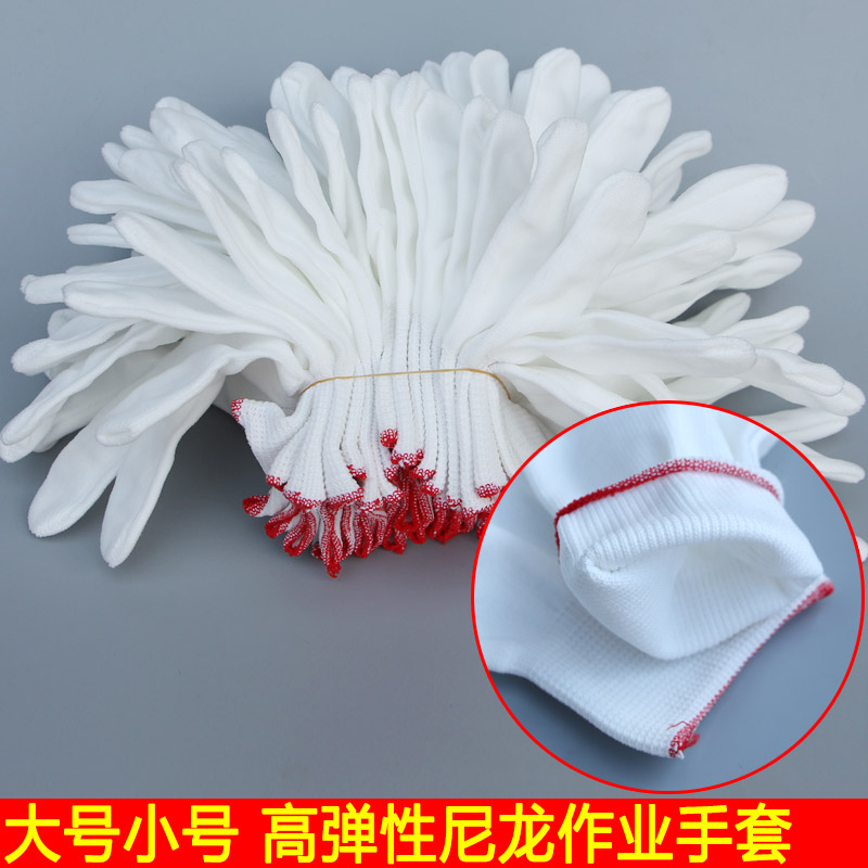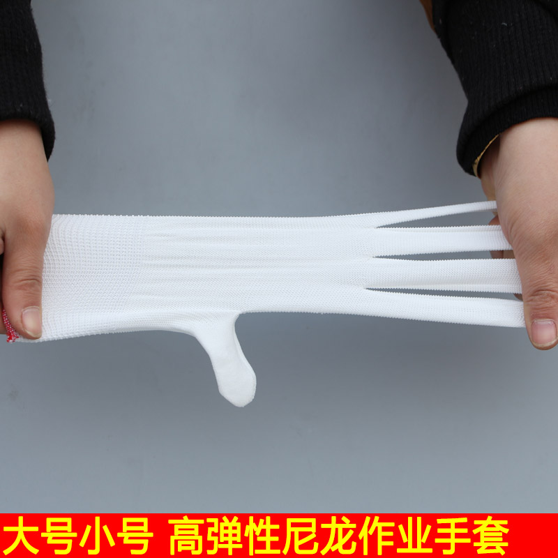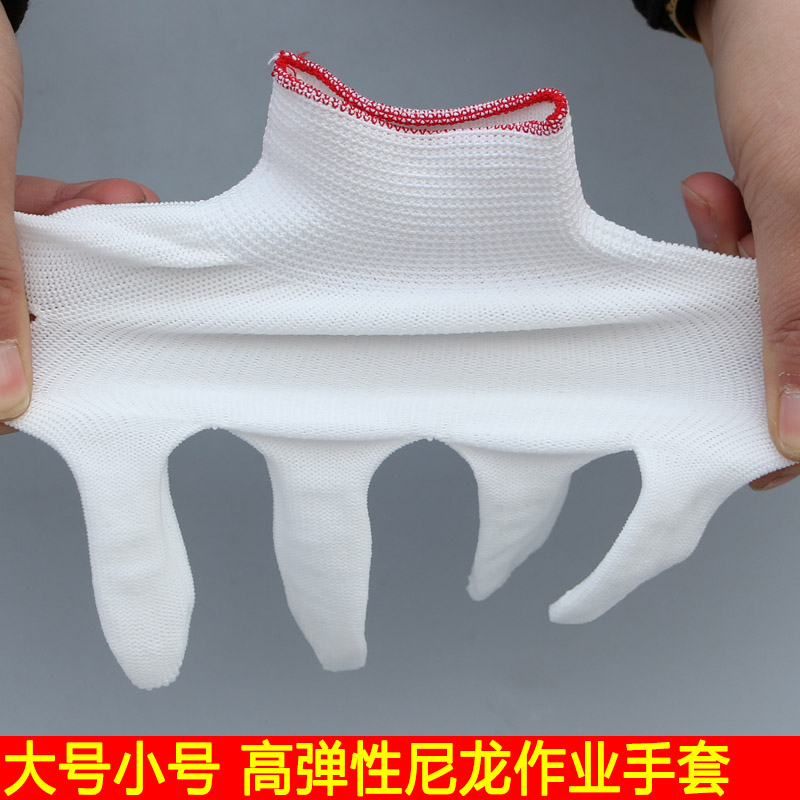 Nylon Gloves Wear Resistant Slip-Proof White Labor Protection Gloves Thin Slip-Free Dust-free Work Cotton Yarn Gloves