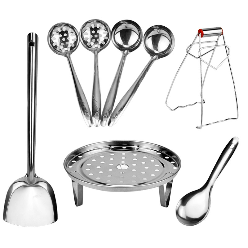 Stainless Steel Cookware 8 Pieces Suit Pan Shovel Full Scoop Scoop scoop Scoop Spoon Soup Spoon Leaking Spoon Kitchen Supplies Cooking tools