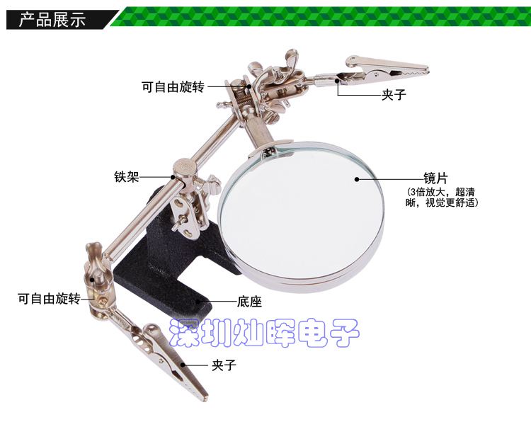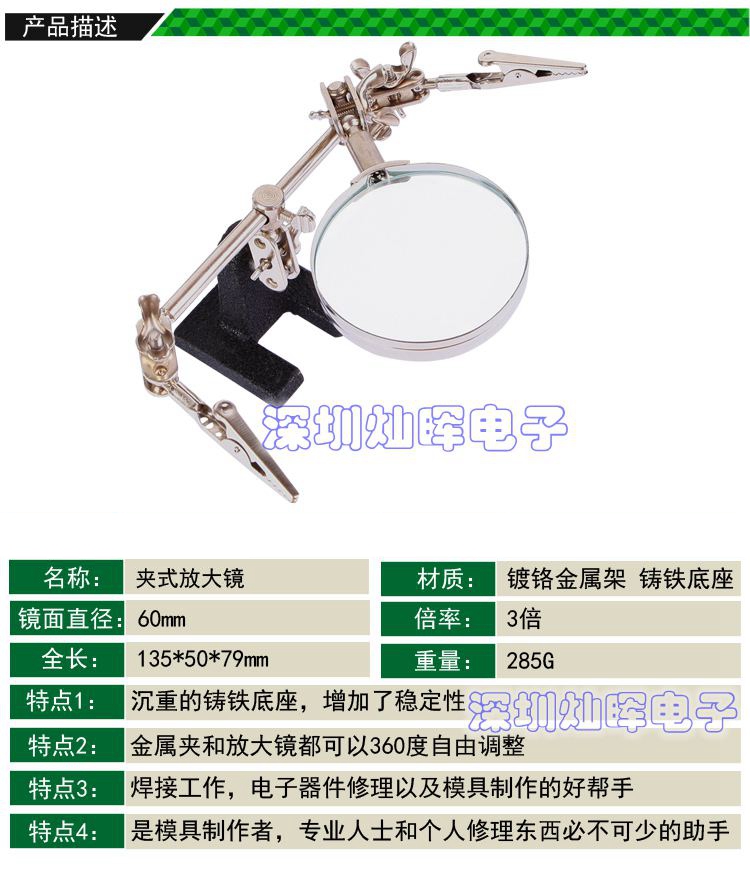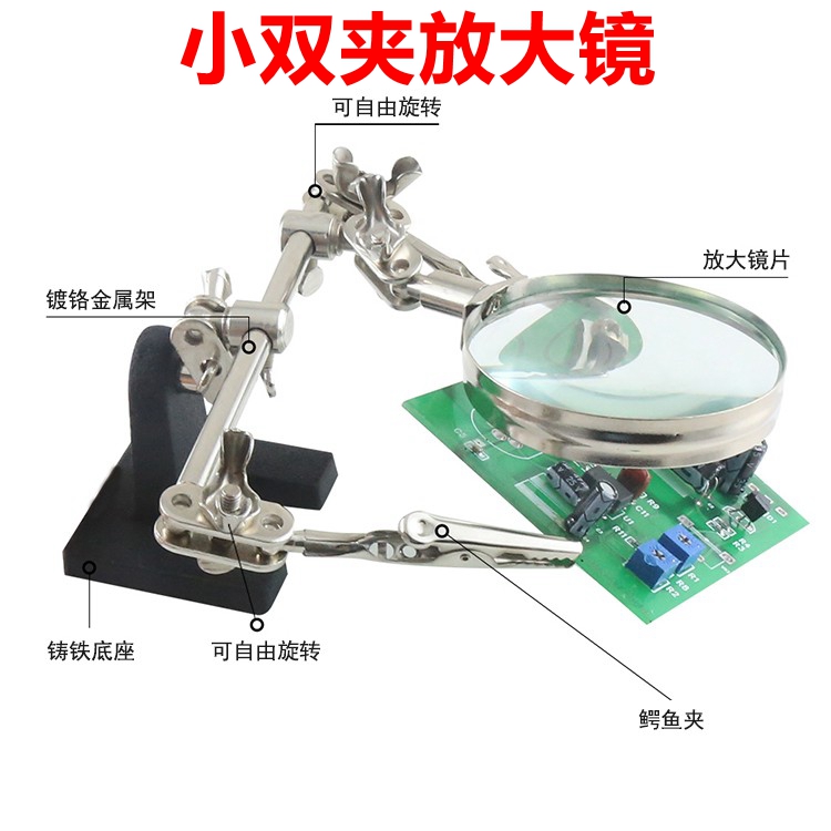 Double clip magnifying glass Mobile phone circuit board repair platform fixture Auxiliary welding tool with clip desktop