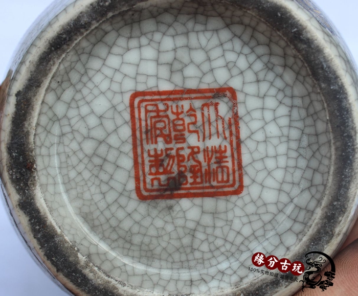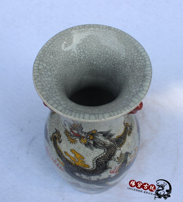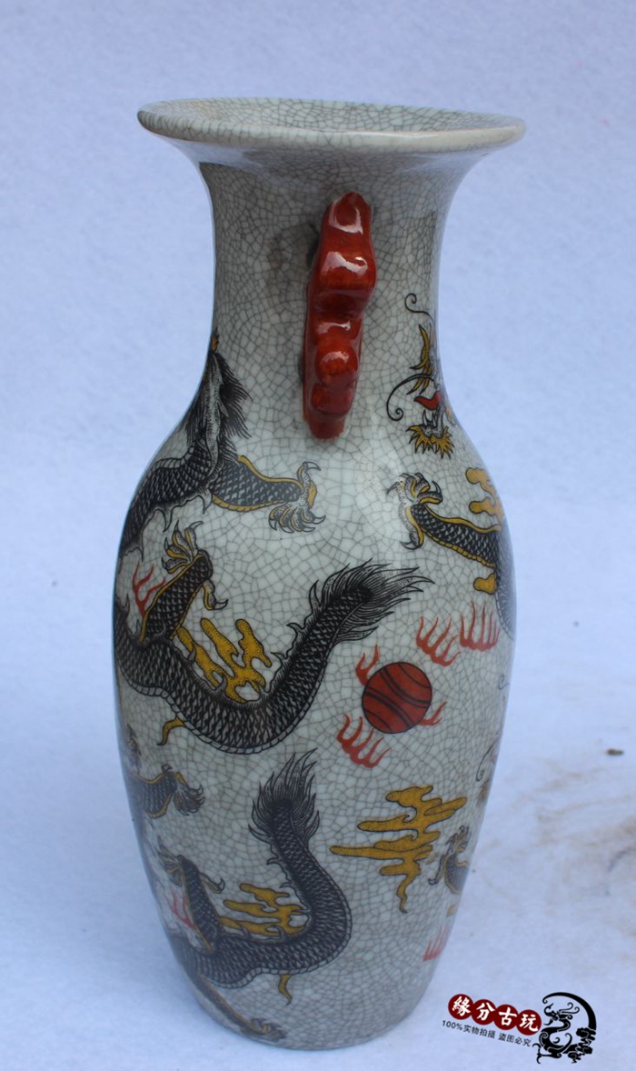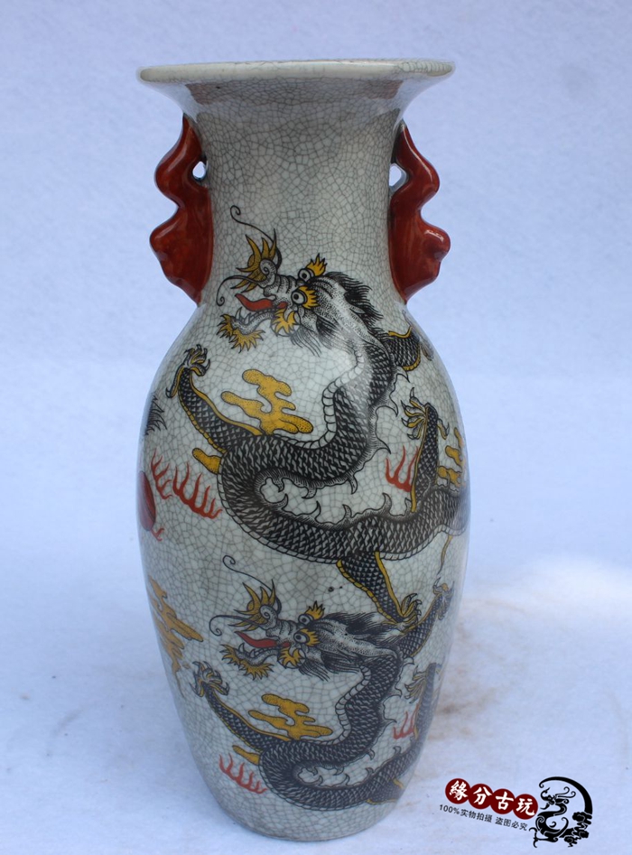 Antique collection Antique old Jingdezhen blue and white porcelain antique frame ornaments Pastel double dragon vase flower arrangement