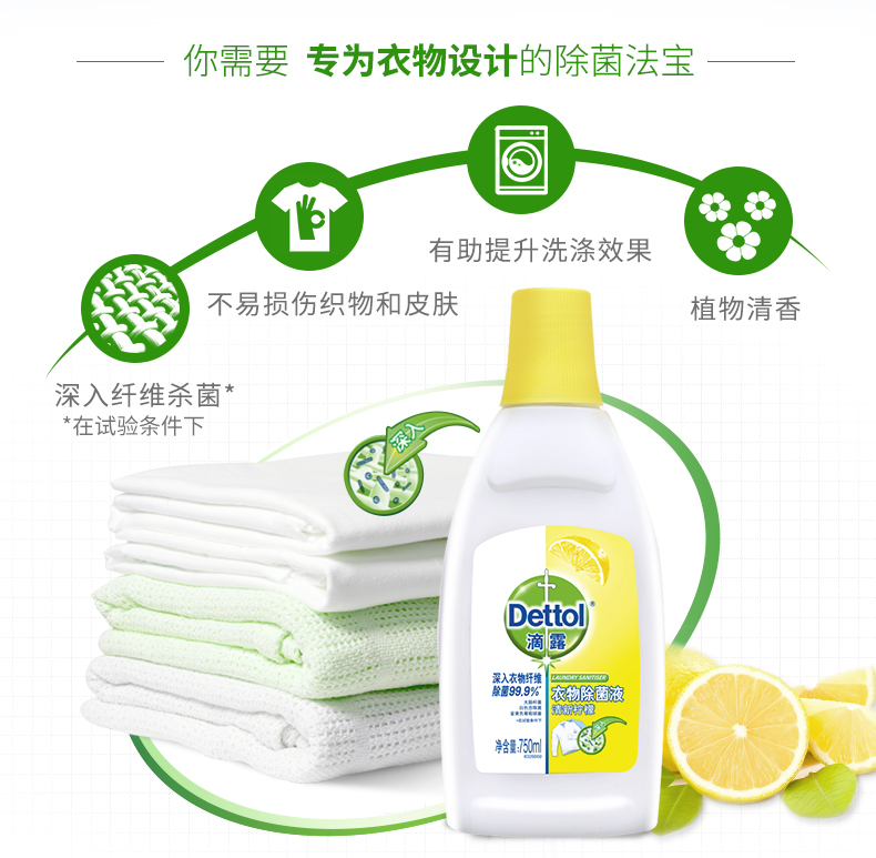 Dettol clothing degerming liquid fresh lemon 750ml antibacterial natural disinfection laundry underwear underwear