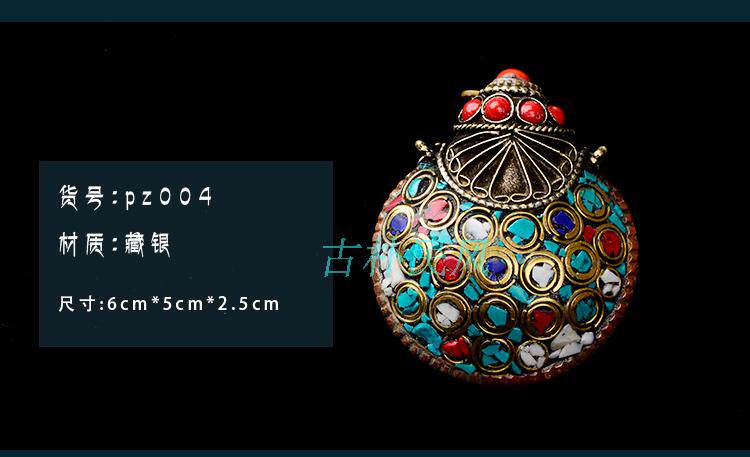 Tibetan featured personality heterodomain pure handmade Nepali brass inlaid stone jewel nose smoke pot flat round small number hanging decoration