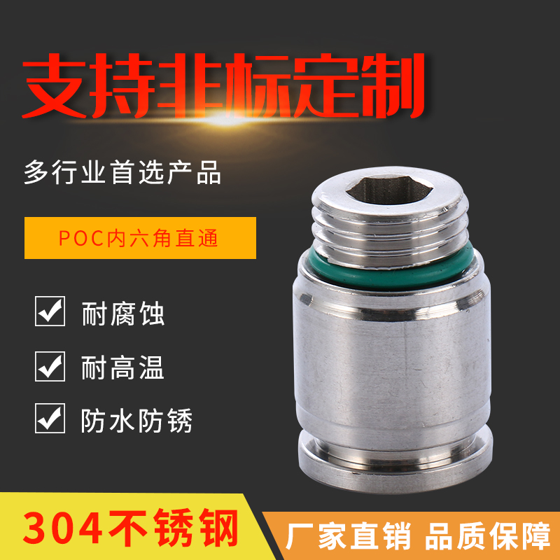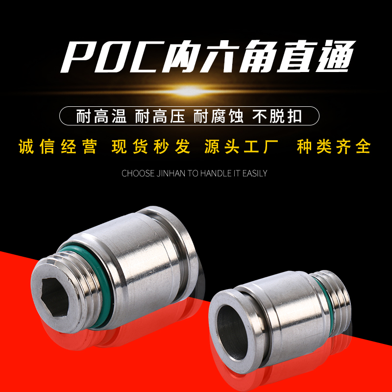 Jinhan stainless steel 304 POC hexagon external thread straight-through joint Pneumatic trachea quick plug straight-through joint