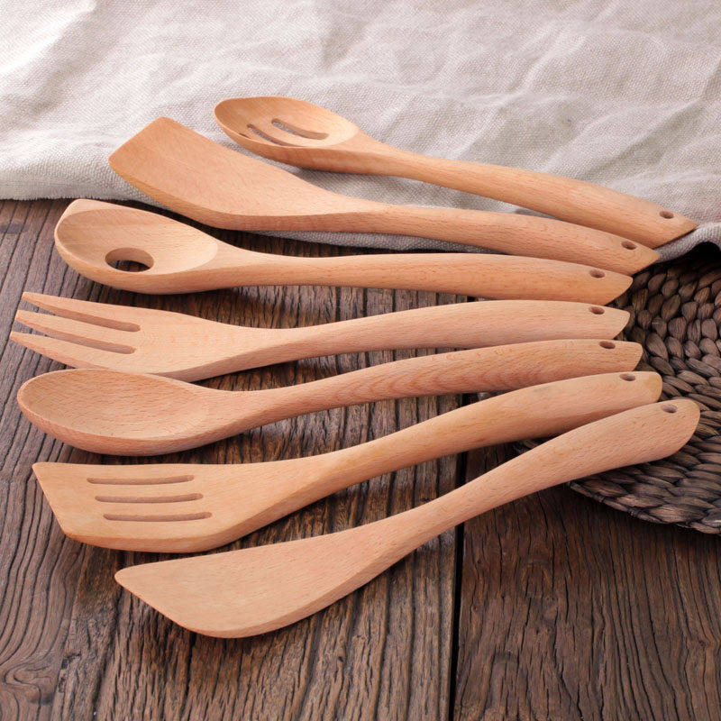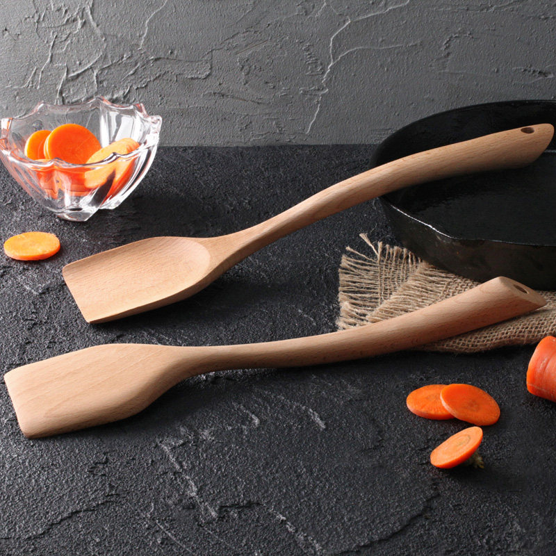 Beech Spatula Solid wood spatula Long handle kitchenware Paint-free