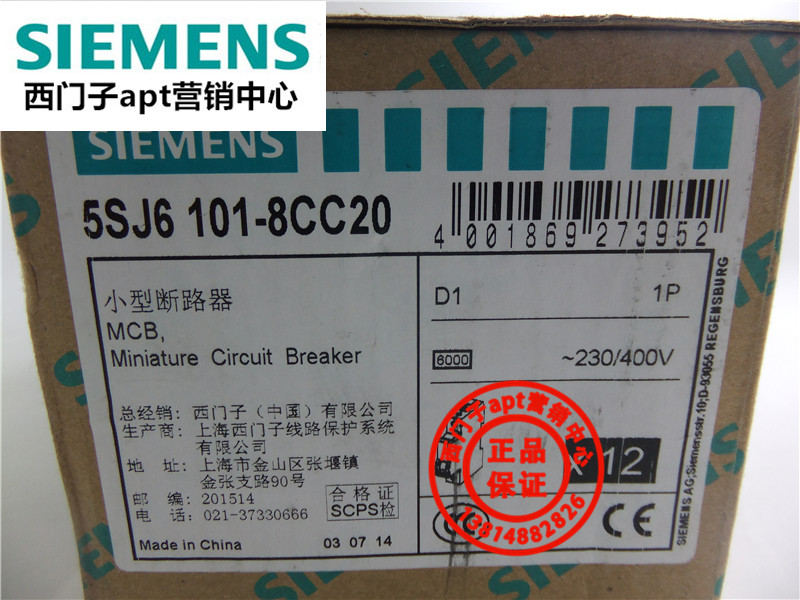 (Fake one penalty ten) Original Siemens circuit breaker 5SJ6101-8CC20 MCB D1 1P400V