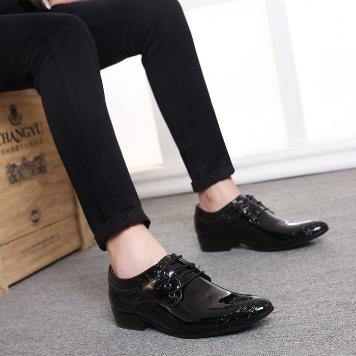 New business formal leather shoes men's British style pointed toe fashion trend young stylist groom wedding shoes