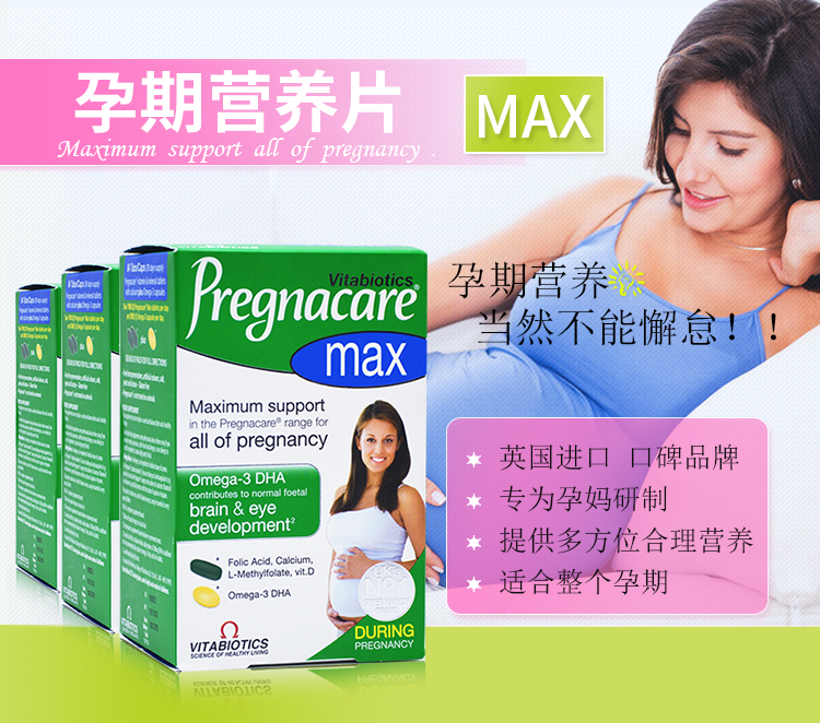 British pregnacare max pregnant women special pregnancy multivitamin folic acid fish oil dha calcium supplement three boxes