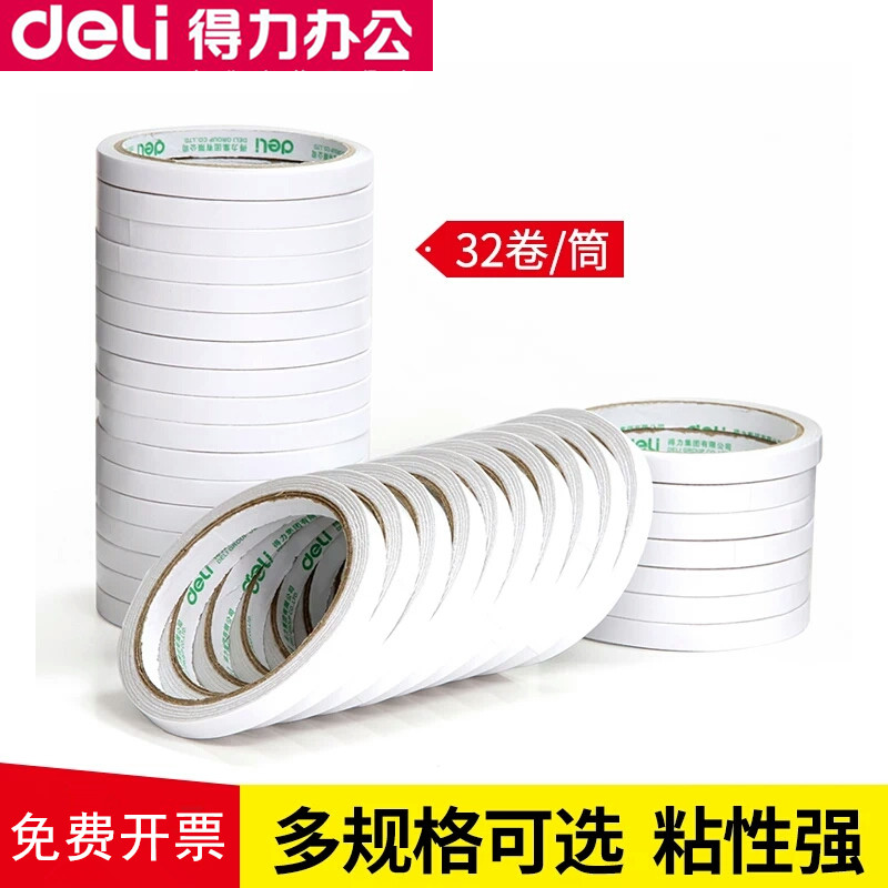 Deli 30400 double-sided adhesive two-sided adhesive tissue paper adhesive width 0 9cm*10y tape Easy to tear sticky good single roll