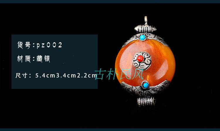 Tibet Nepal Ethnic featured ornaments Bohemian Tibetan silver imitation of old honey wax pendant male and female