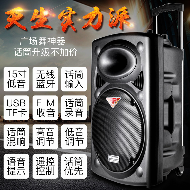 Kim Zheng Square dance sound 15 inches shock heavy bass outdoor moving K - song high power Bluetooth speaker