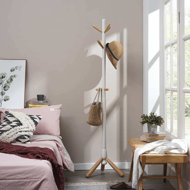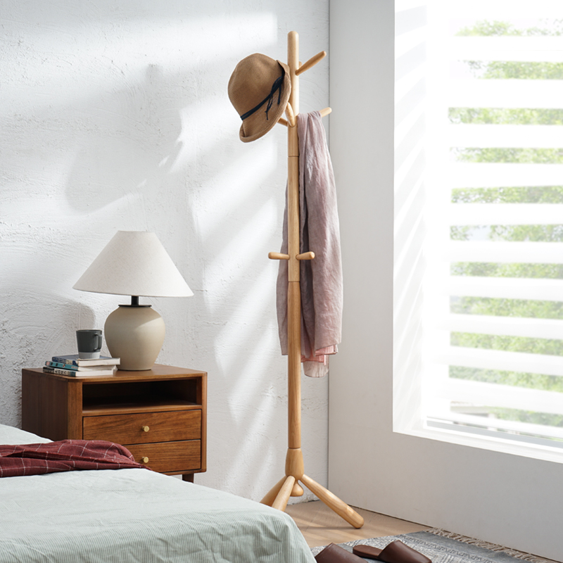 Floor-to-ceiling hanger single pole hanger household clothes rack modern simple Nordic living room bedroom solid wood coat rack