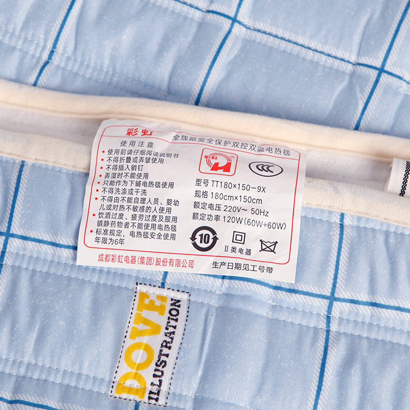 Rainbow electric blanket double-cut electric blanket safe household radiation without water heating increase 15 meters to remove mites