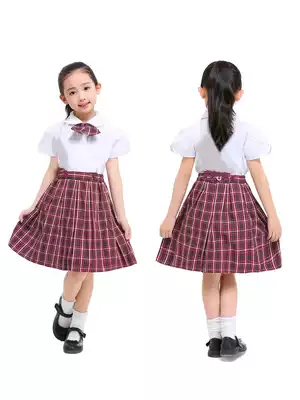 Shenzhen unified primary school uniform men's women's short sleeve spring and summer dress suit shirt short skirt bow tie