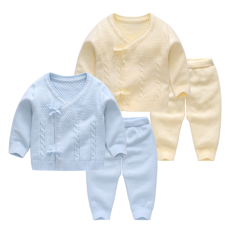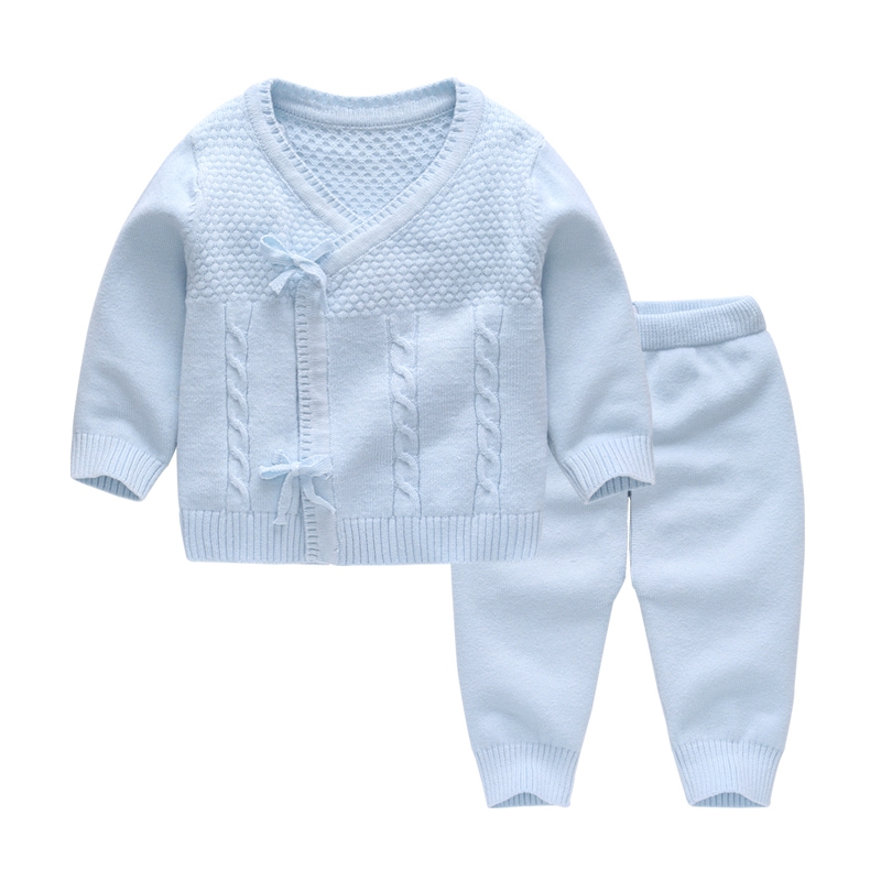 Baby autumn clothes Newborn clothes Sweater suit Newborn baby spring and autumn yarn clothes Knitted cardigan jacket and monk clothes