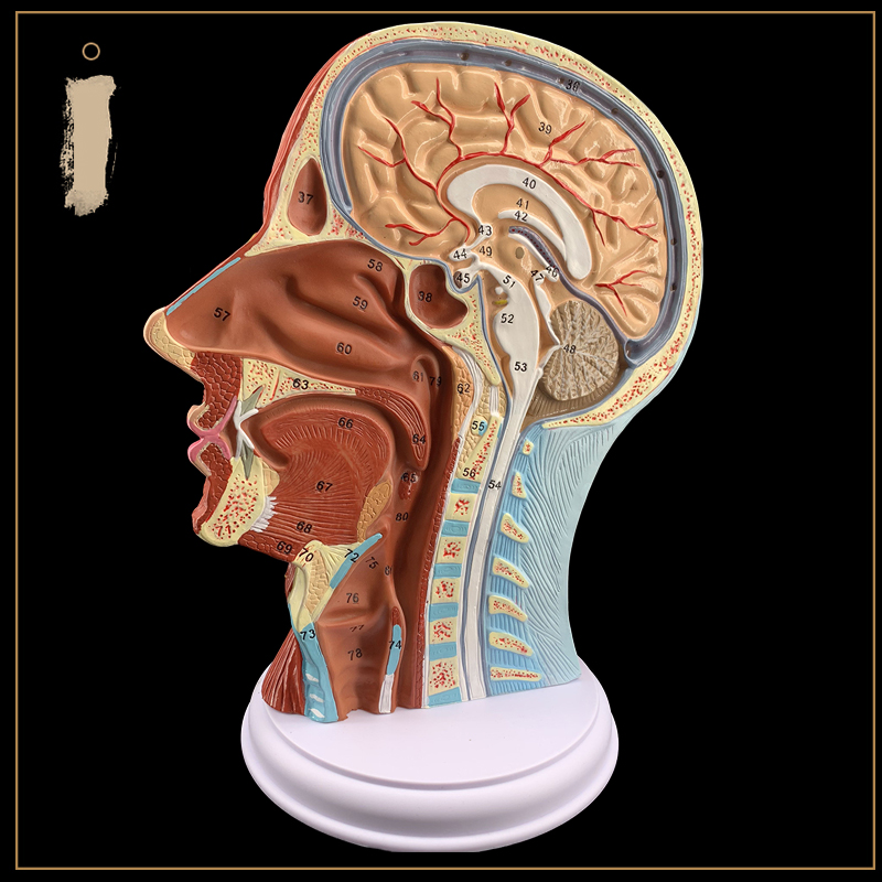 Human skull with muscular neurovascular model cosmetic facial nerve microcosmetic medical dissection