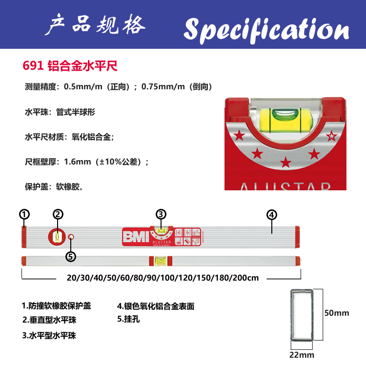 German BMI Binal ALUSTAR high precision thicking aluminum alloy level of 691 60 90 120cm