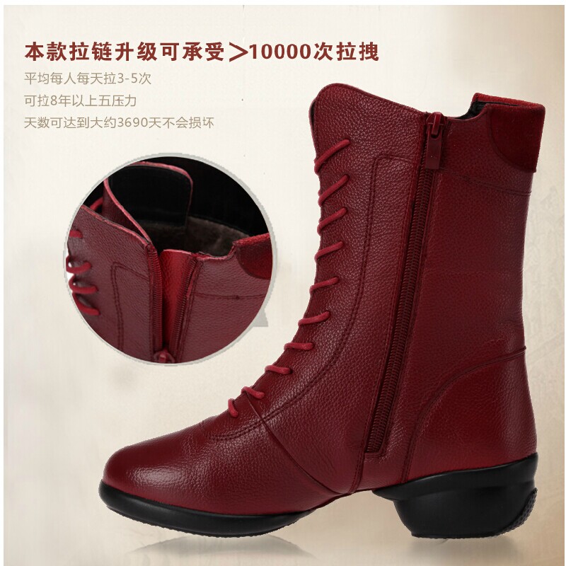 Precisely Fish Dance Shoes Women Soft Bottom Autumn Winter New Square Dance Shoes Genuine Leather Water Soldiers Dance Boots High Help Dancing Shoes-Taobao