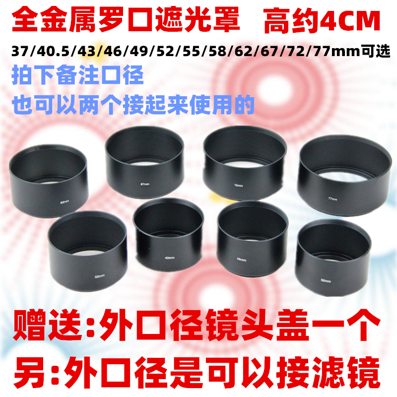 Metal medium telephoto universal hood 49 52 55 58 62 67 72 77mm aluminum alloy hood