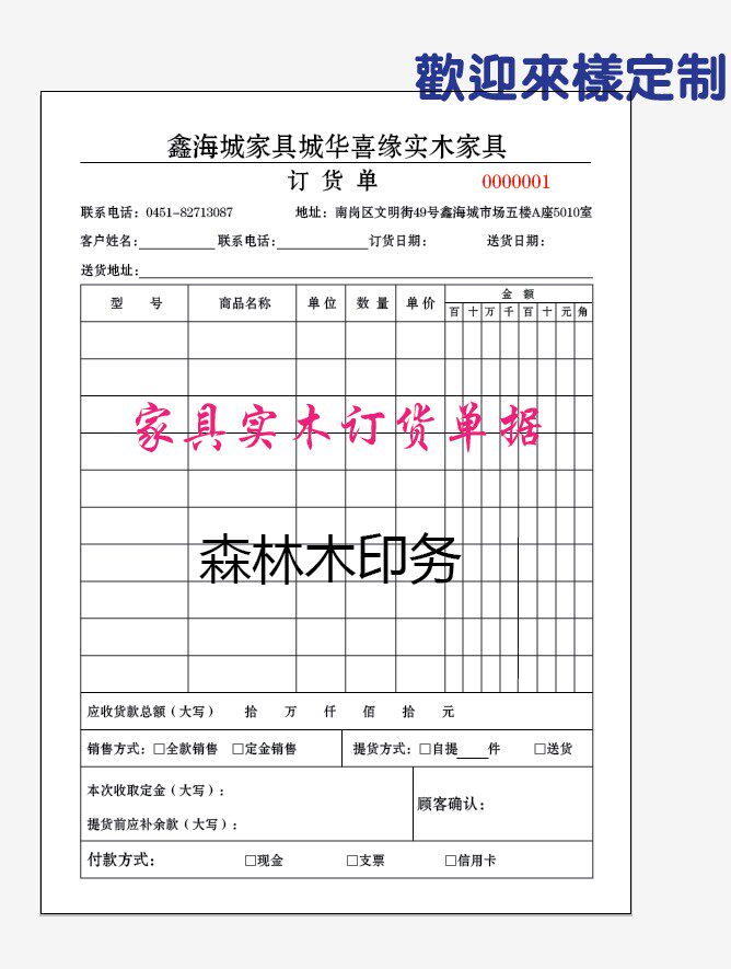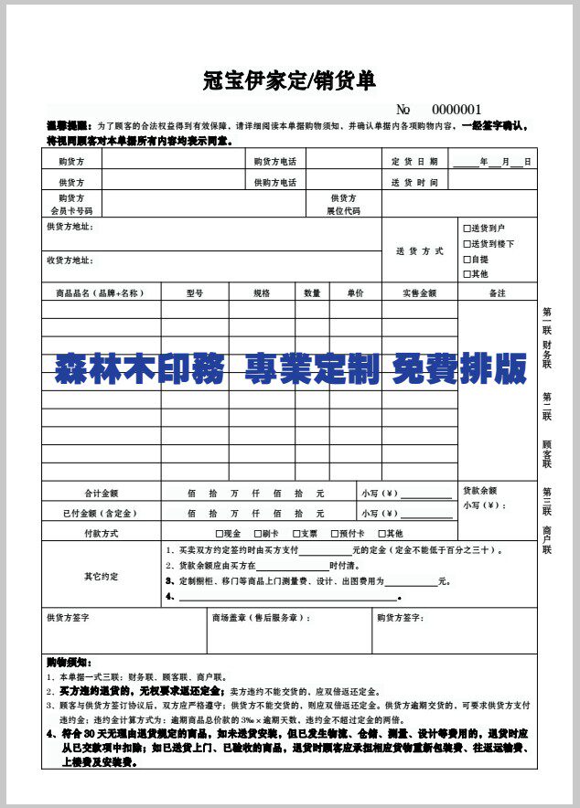 Hardware wholesale and retail sales list order contract delivery order inbound and outbound order two or three carbon-free copy order custom-made