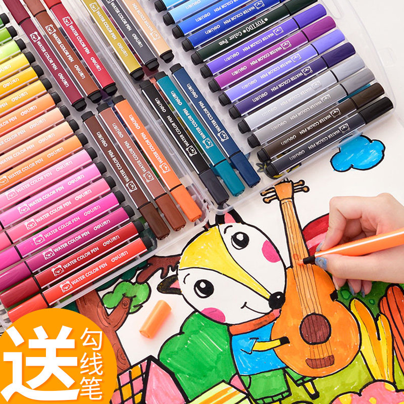 Powerful watercolor pen color pen set kindergarten children's painting set triangle rod thick head watercolor pen color safe washable large-capacity soft head watercolor pen primary school students painting brush