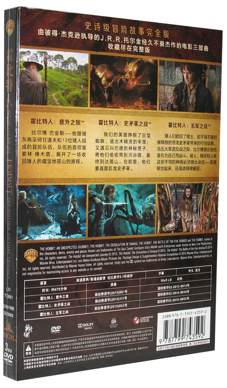 Film Hobbit 1-3 Trilogy Collection 3DVD9 English and Chinese Bilingual Chinese and English Subtitles HD DVD