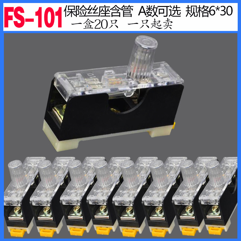 6 * 30MM fuse holder with lamp FS-10102103 single double triple card rail mounting with built-in 10A glass tube-Taobao