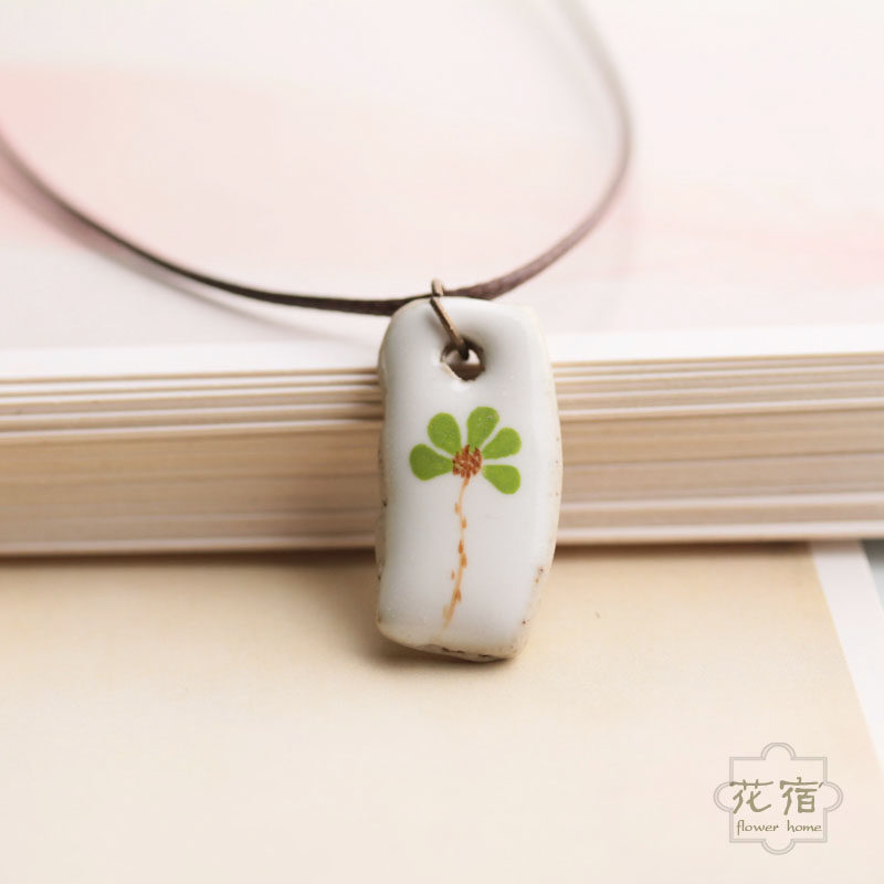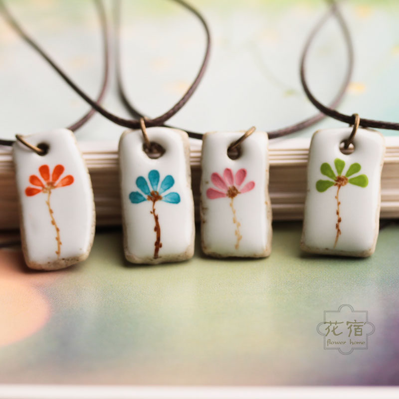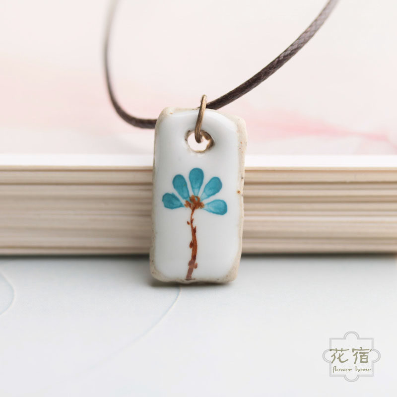 Huasu) hand-painted flower open collarbone necklace pendant female literary fan small fresh Mori girl retro temperament jewelry gift