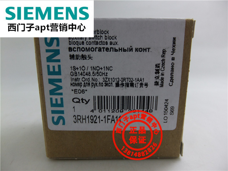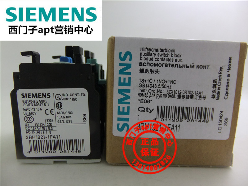 (False one penalty ten) Original Siemens contactor auxiliary contact 3RH1921-1FA11 1NO1NC