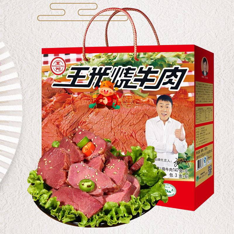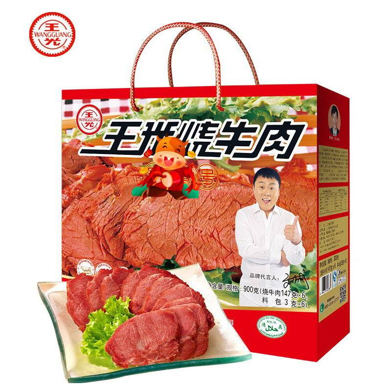 Beef snacks Shandong specialty Heze Cao County Wang Guang Roast beef Halal ready-to-eat cooked New Year gift box 900g