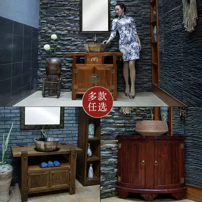 Jingyan new Chinese style solid wood Bath Cabinet combination dressing room floor-to-ceiling washing table mirror cabinet water basin cabinet Bath Cabinet