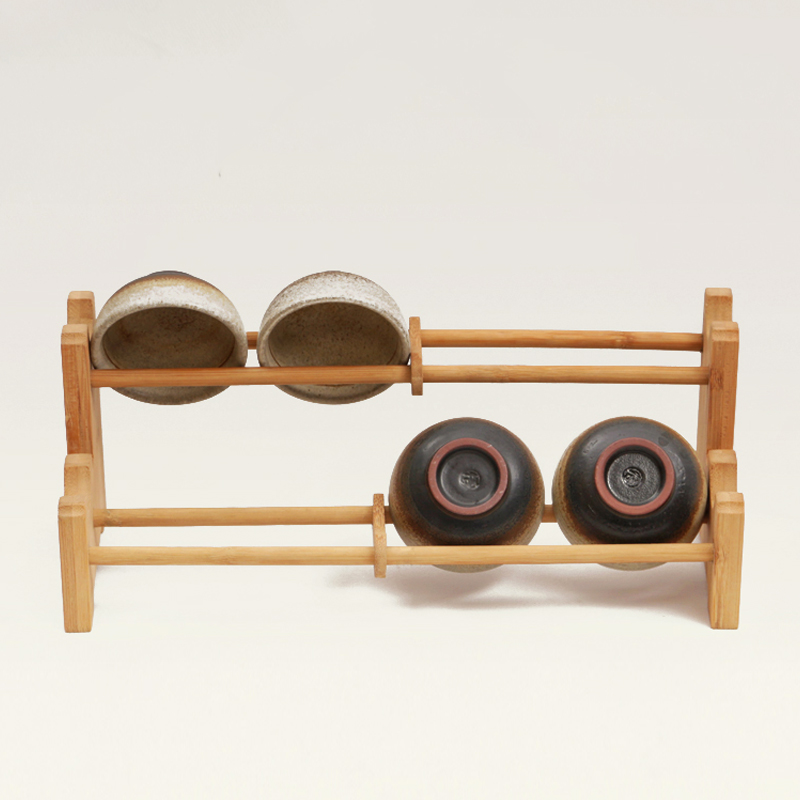 Bamboo double layer Gongfu tea cup shelf Tea path accessories tea set Zero fit solid wood Monolayer Pint Drinking Cup containing layer shelf