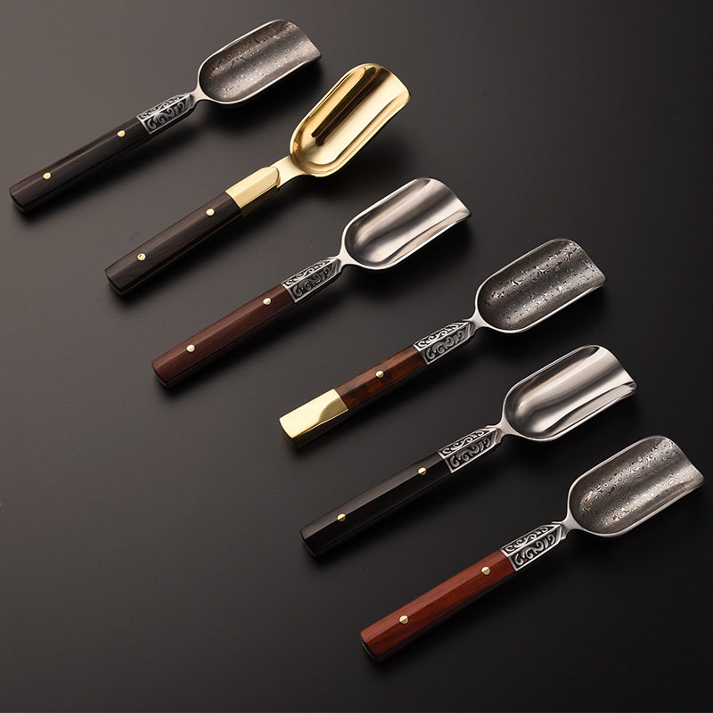 Black sandalwood stainless steel tea spoon Black sandalwood Damascus tea spoon Red Sandalwood stainless steel tea spoon Red Sandalwood Damascus tea spoon Snake wood copper tail Damascus tea spoon Nouveau Riche Gold edition pure copper tea spoon