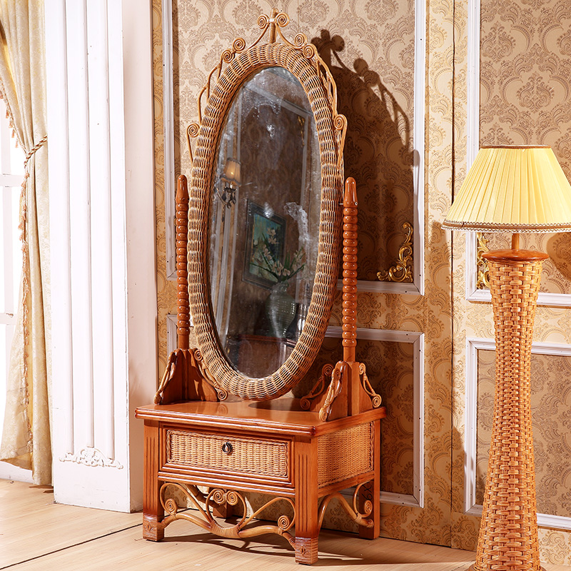 rattan full-body mirror full-body mirror makeup mirror real rattan furniture bedroom mirror