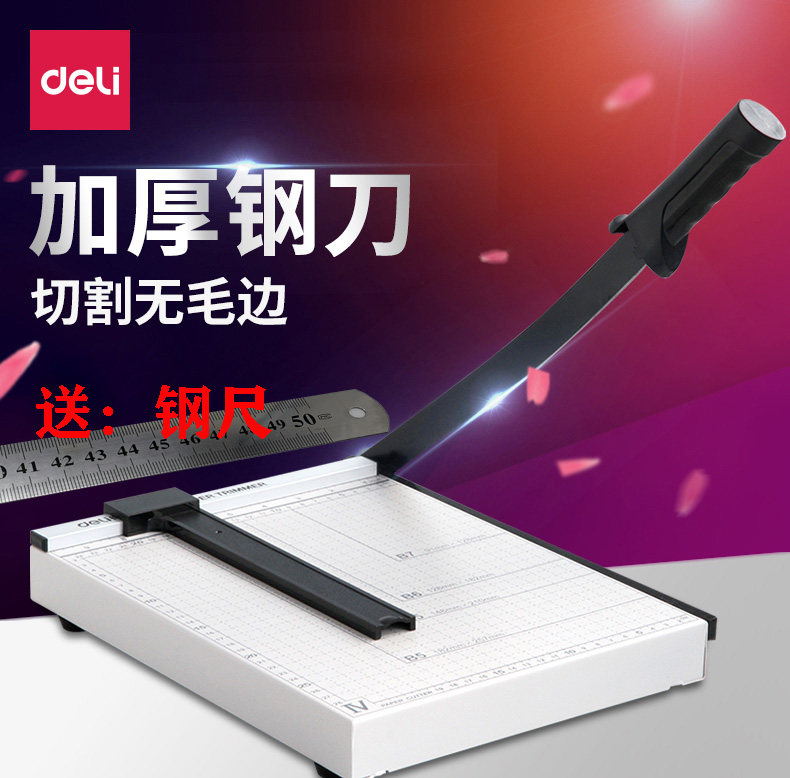 deli large paper cutter 8014 steel cutter paper cutter Manual paper cutter A4 paper cutter cutter B4 Small multi-function photo business card cutting B5 gate knife thickening guillotine