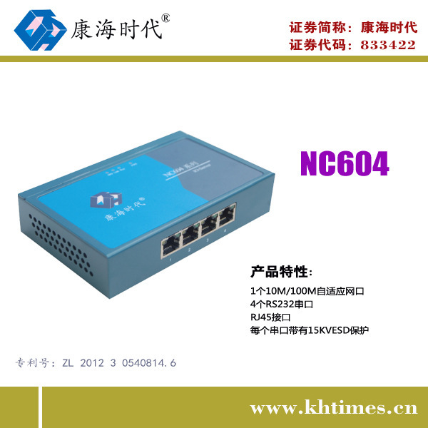 Kanghai times NC604 4-port RS232 serial port to RJ45 network port TCP IP serial port networking server