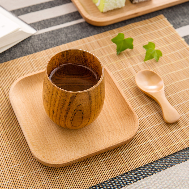 Rectangular section square with rectangular section Stainless Steel Stirring Spoon Rectangular date Wood mug oblong Round Nursery square Round Nursery Tray 4 pieces set