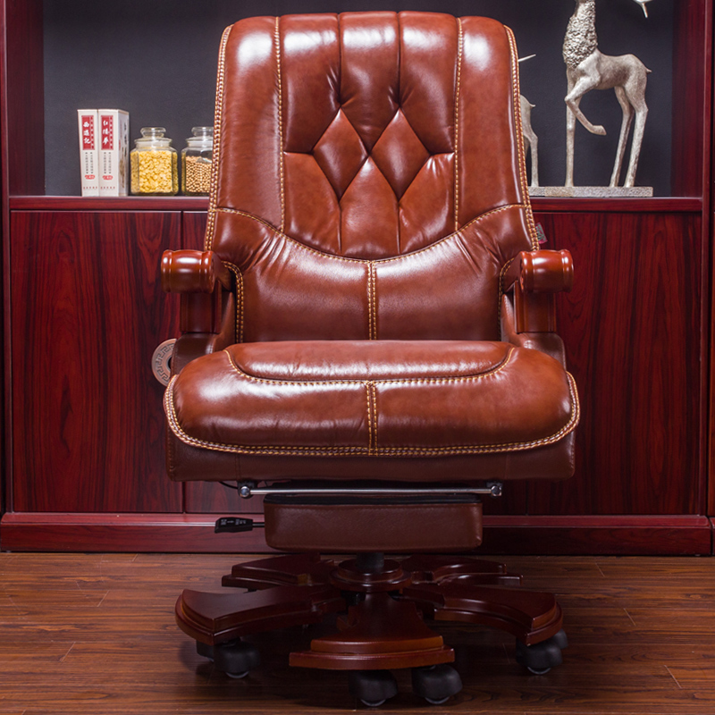 Lifollon Luxury Solid Wood Owner Office Chair Genuine Leather Large Class Chair Lift Swivel Can Footrest Bull Leather Computer Chair