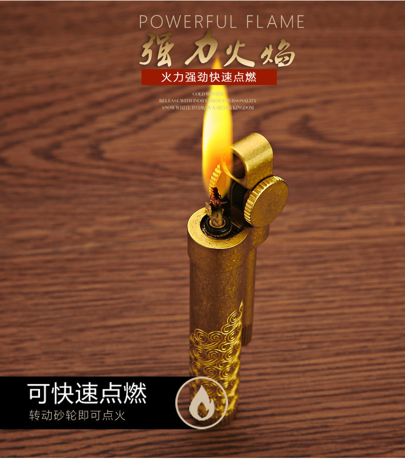 Bai Cheng New Vintage Copper Grinding Wheel Kerosene Lighter Ignition Nostalgic Gift Free Lettering