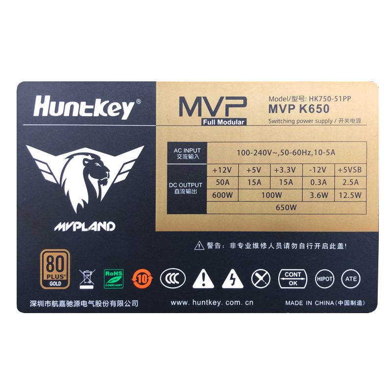 Hangjia MVP K650 power supply 650W gold full module power supply 650W 750W eat chicken light sound gaming power supply