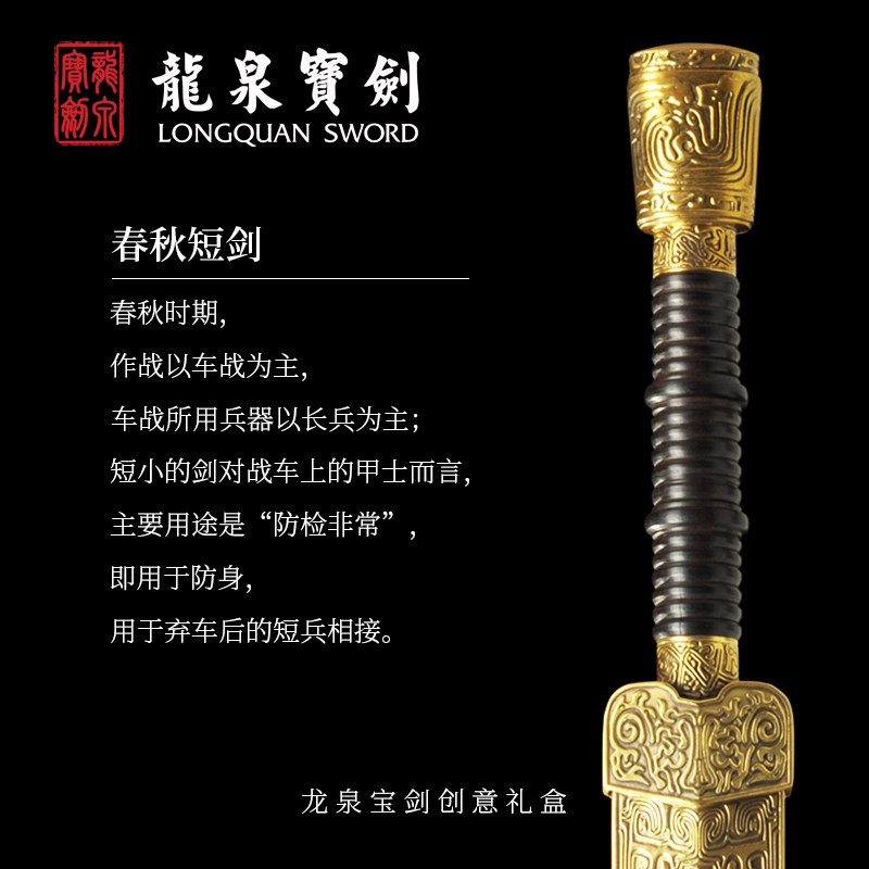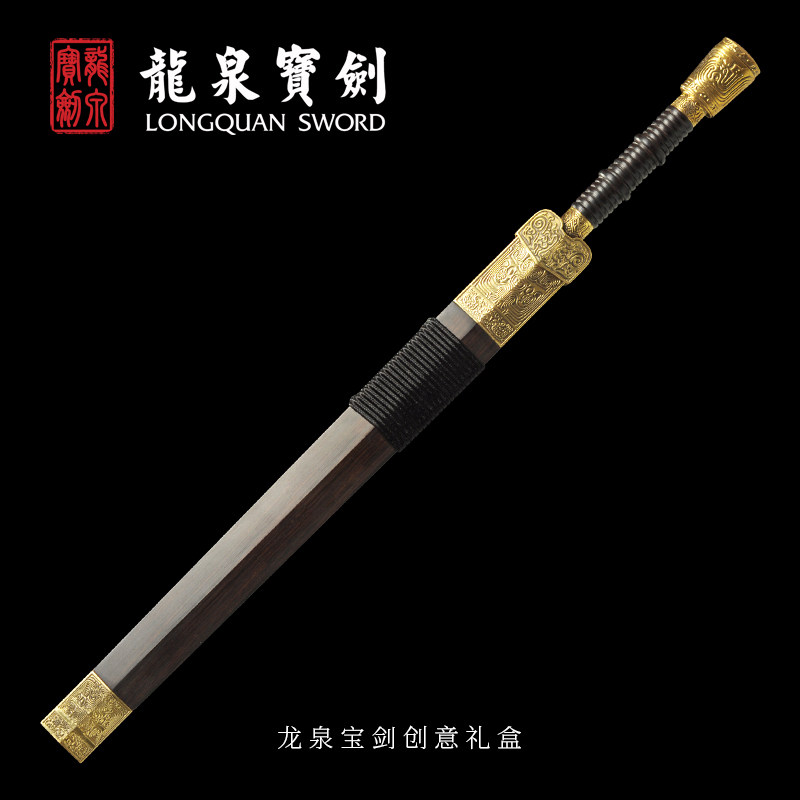 Dragon Quan Baojian sword Han sword flower pattern steel Spring and autumn short sword creative gift box anti-body small knife unopened blade Ventures Gift
