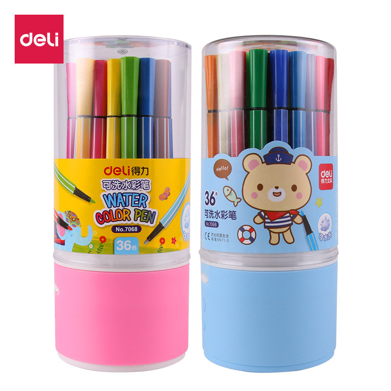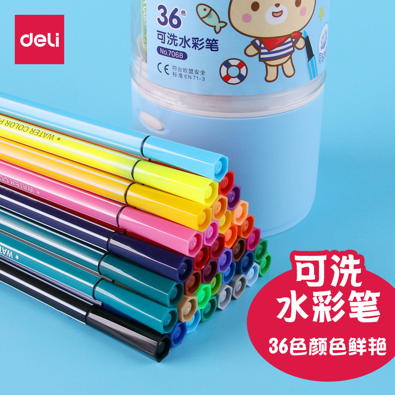 Deli children's watercolor pen painting set 24 colors 36 colors barrel kindergarten washable primary school students painting graffiti