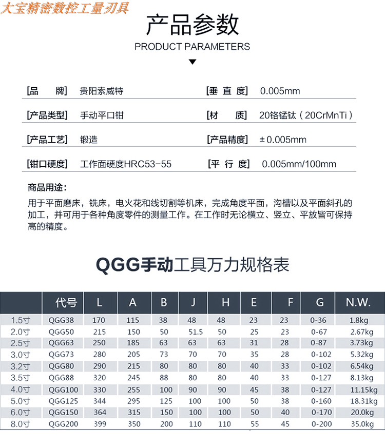 QGG Southwest precision manual grinding bed flat mouth pliers Milling bed precision flat mouth pliers batch 2-8 inch QKG Sowitt