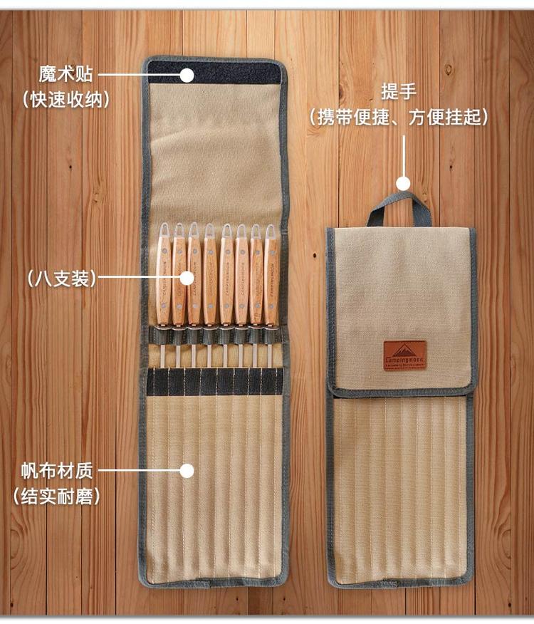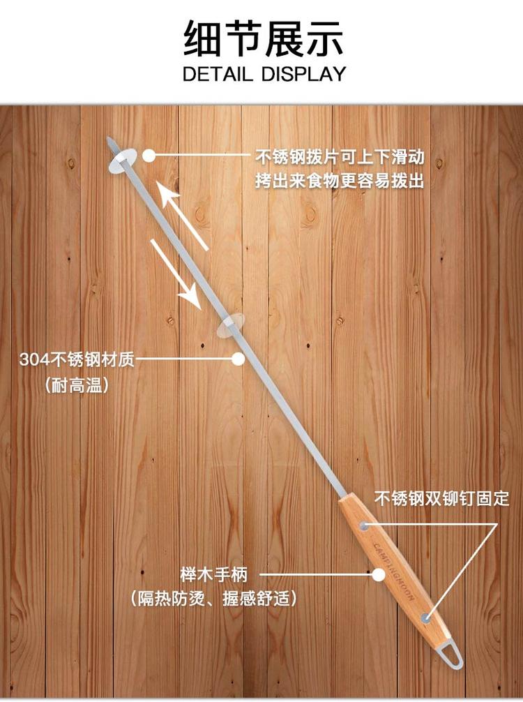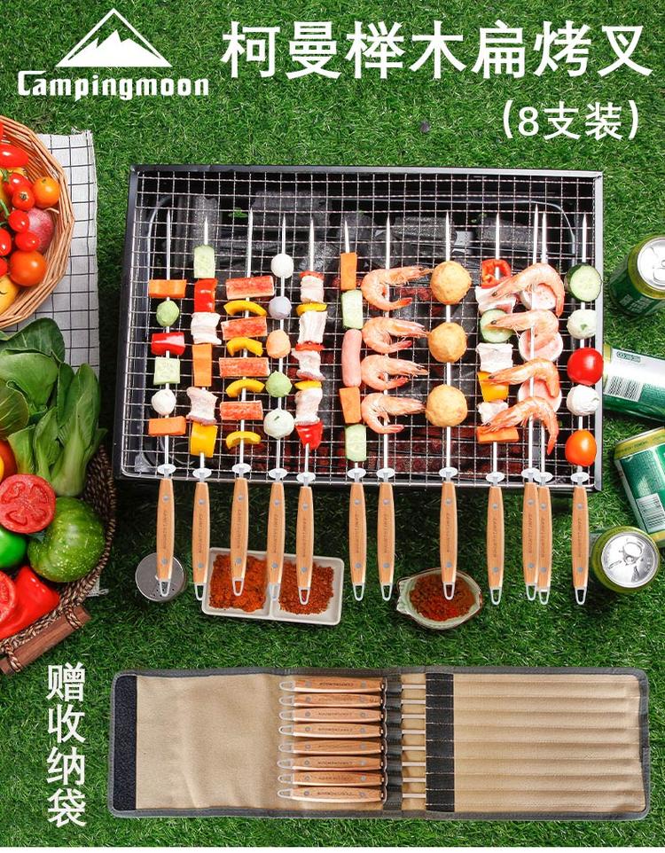 Coleman stainless steel colored wooden handle Roasted flat roasting fork signature four sets of baking needle barbecue grill accessories